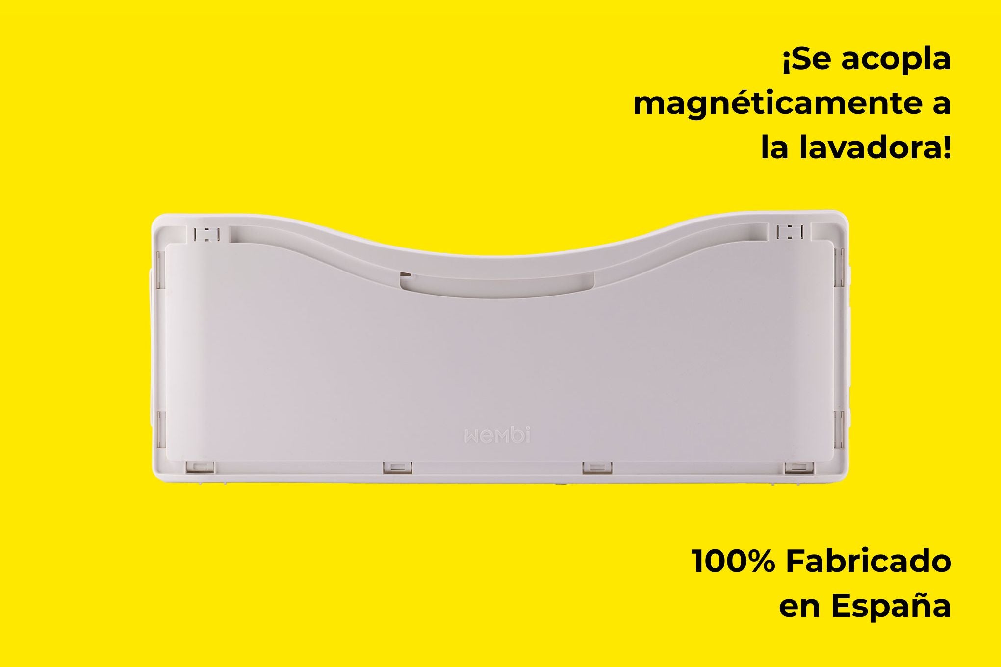 Gracias a sus potentes imanes integrados, Wembi se fija en la parte inferior de la lavadora sin deslizarse ni vibrar.